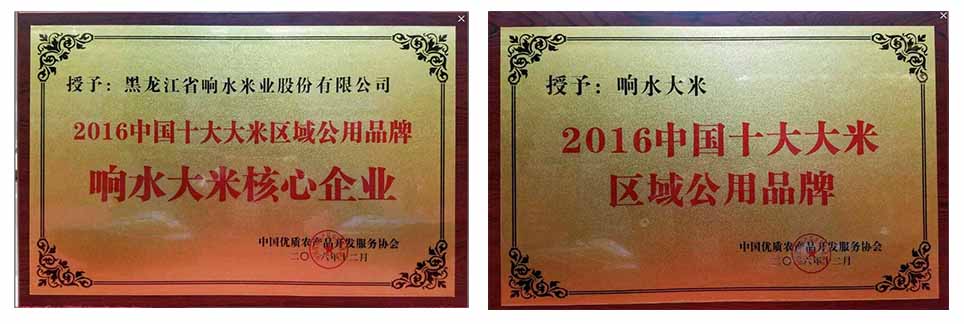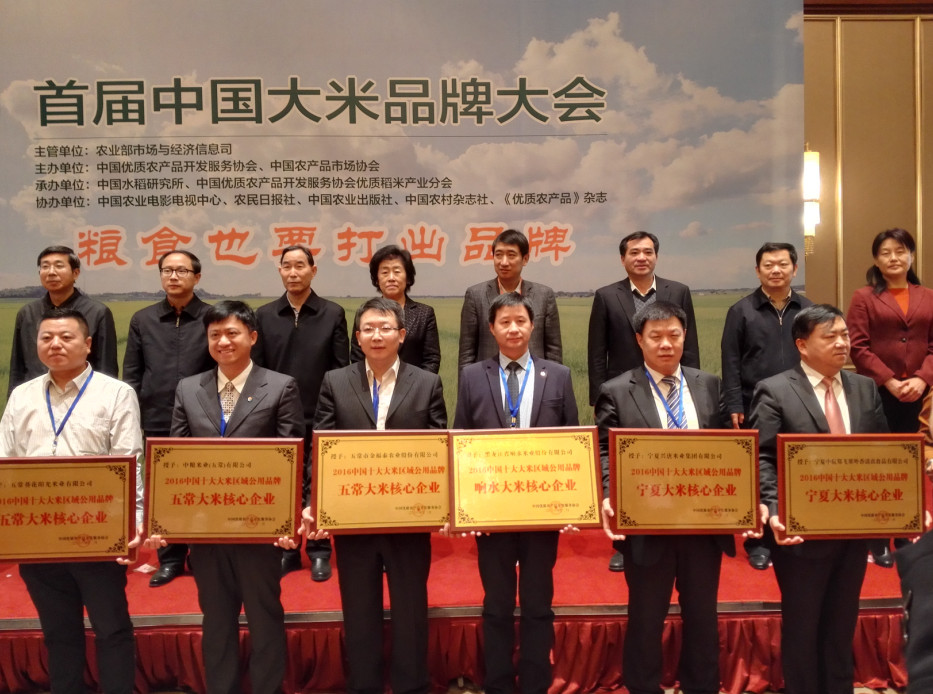 經(jīng)各地推選和專家評審,本屆大會授予五常大米、響水大米、慶安大米、盤錦大米、寧夏大米、宣漢桃花米、遮放貢米、射陽大米、興化大米、羅定稻米“2016 中國十大大米區(qū)域公用品牌”稱號。授予黑龍江響水米業(yè)股份有限公司等企業(yè)“2016中國大米區(qū)域公用品牌核心企業(yè)”稱號。